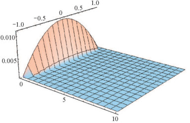 由定理3.1-3.3可知,$p+q<m$或者$p+q=m$,$a\mu_{m,q}>1$时,问题(1.1)的最大解$U(x,t)$是正的,这意味着此时反应项的影响强于扩散项,当$p+q>m$时,非线性反应项的影响变小,再加上小初值的条件,于是扩散项使问题(1.1)的解的熄灭现象得以发生. 但是$p+q=m$且$a\mu_{m,q}<1$还无法确定问题(1.1)的解是否在有限时刻熄灭. 下面的数值解演示了问题(1.1) 的解$u(x,t)$的熄灭行为.