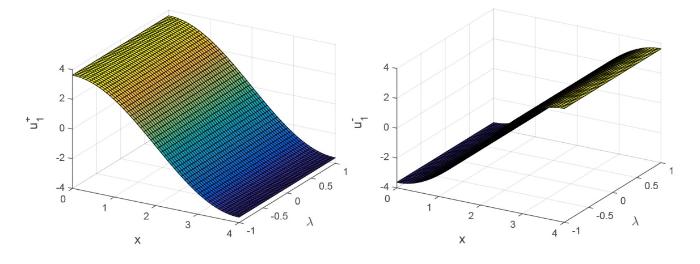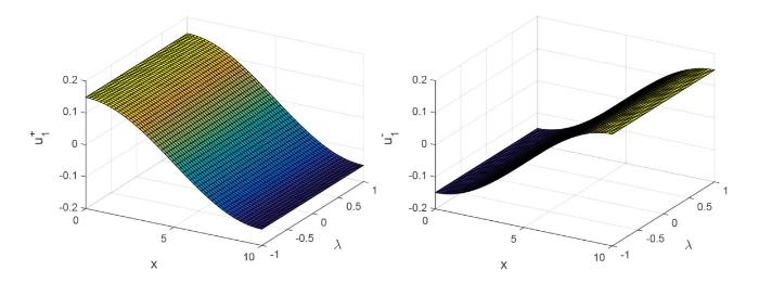 (3.7) $\begin{aligned} \overline{u}_{1}^+&=\sqrt{\frac{4(\pi^2 L^2+a\pi^{4}-\lambda L^{4})(3\pi^2 L^2+15a\pi^{4})}{2b^2L^8-9d\pi^2L^6-45ad\pi^4 L^4}}\cos\frac{\pi x}{L}\\[2mm] &~~~+o\Bigg(\sqrt{\frac{2(\pi^2 L^2+a\pi^{4}-\lambda L^{4})(3\pi^2 L^2+15a\pi^{4})}{2b^2L^7-9d\pi^2L^5-45ad\pi^4 L^3}}\Bigg),\\[2mm] \overline{u}_{1}^-&=-\sqrt{\frac{4(\pi^2 L^2+a\pi^{4}-\lambda L^{4})(3\pi^2 L^2+15a\pi^{4})}{2b^2L^8-9d\pi^2L^6-45ad\pi^4 L^4}}\cos\frac{\pi x}{L}\\[2mm] &~~~+o\Bigg(\sqrt{\frac{2(\pi^2 L^2+a\pi^{4}-\lambda L^{4})(3\pi^2 L^2+15a\pi^{4})}{2b^2L^7-9d\pi^2L^5-45ad\pi^4 L^3}}\Bigg).\\ \end{aligned} $