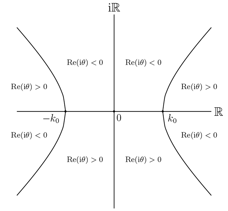 $\text{Re}({\rm i}\theta(k))$ 的符号图表.