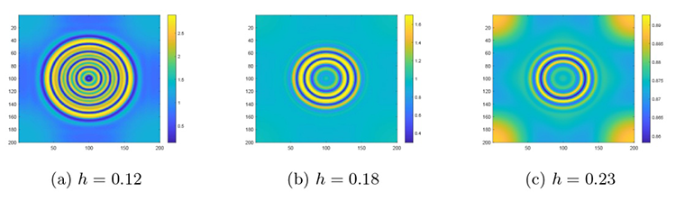 系统 (2.1) 在猎物种内竞争系数 $h$ 不同取值下的斑图模式.