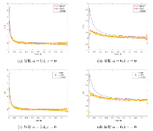 注意到 $({\rm i}\xi)^{\alpha}$ 的实部为$|\xi|^{\alpha}\cos\frac{\alpha\pi}{2}$ , 由于因子 ${\rm e}^{|\xi|^{\alpha}\cos\frac{\alpha\pi}{2}(1-x)}$ 在 $0\leq x<1,|\xi|\rightarrow+\infty$ 时呈指数增长, 因此, 数据 $f(t)$ 的小扰动将被该因子无限放大, 因此根据测量数据 $f^\delta(t)$ 恢复函数 $u(x,t), 0\leq x<1$ 是严重不适定的. 为了解决这个问题, 我们使用 Landweber 迭代法求解. Landweber 迭代法可以视为极小化泛函 $R(u):=\|f^{\delta}-Ku\|^{2}$ 的最速下降法. 给定初始函数 $u_0$ 以及参数 $0<\lambda<1/||K||^2$ , 迭代格式定义为