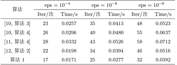 ... 2) 将本文算法 1 与文献 [12 ] 的算法相比, 将最小值自适应步长改为最大值自适应步长并加入变量 $k$ , 改进了固定的自适应步长并使迭代序列收敛速度加快; ...