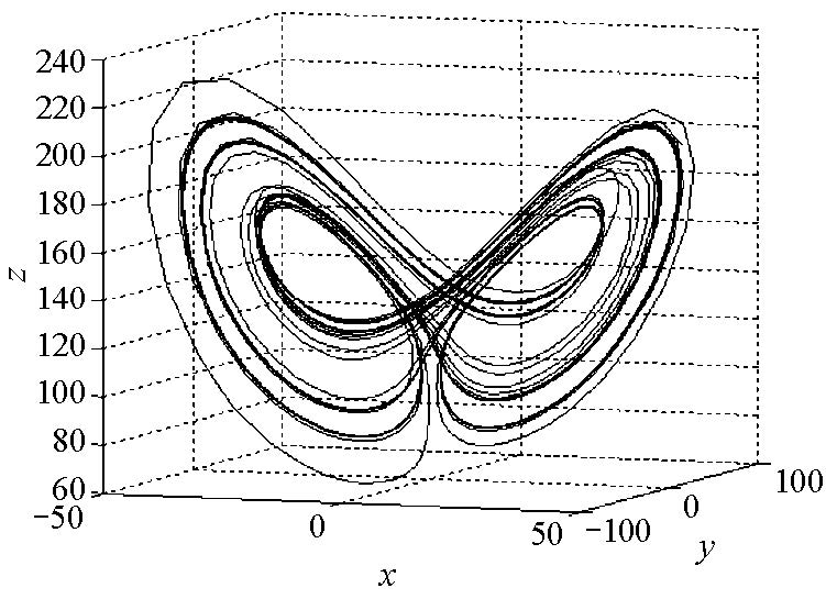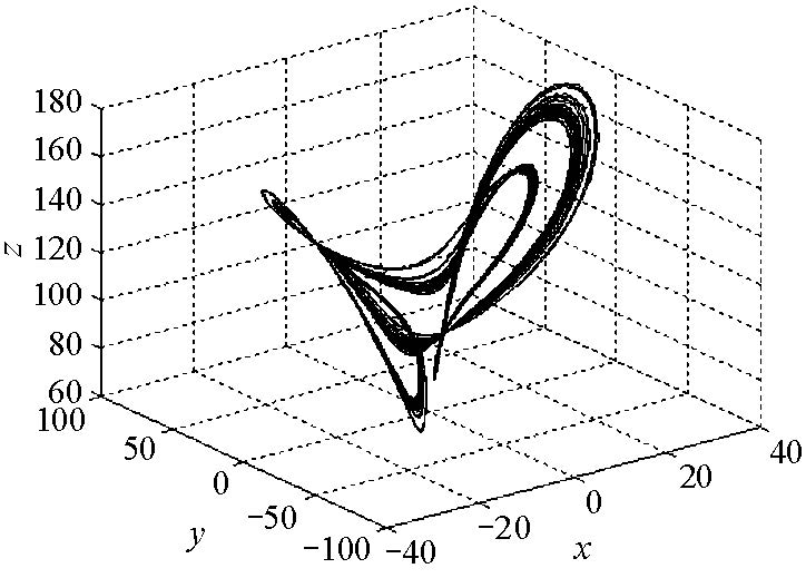 取$\sigma=10,a=2,b=8/3,c=0.002$, 我们对系统(2.1)的动力学行为进行了数值仿真.